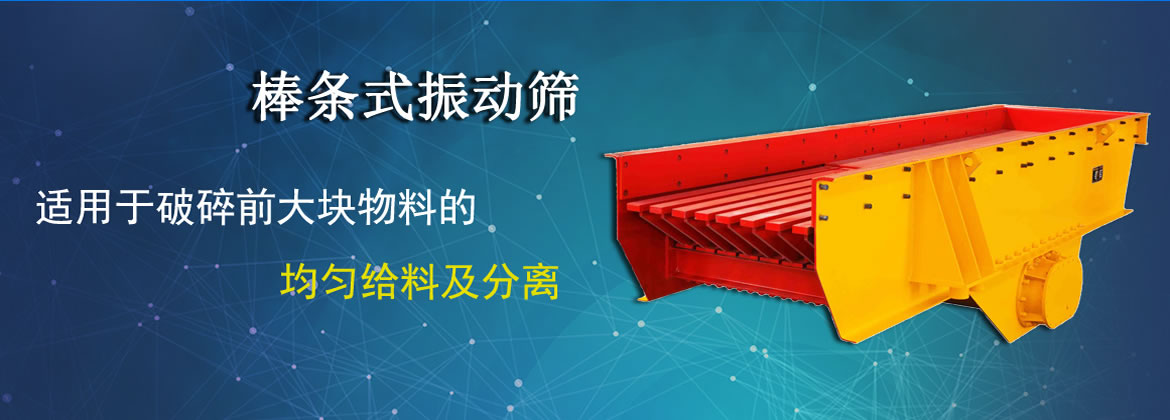 國盛牌棒條式振動(dòng)篩簡稱棒條篩,采用盲板加棒條形式的給料面,樣式分為:激振器式、振動(dòng)電機(jī)式、吊掛式三種,適用于破碎機(jī)前大塊物料的均勻篩分,特別適用于黑色或有色金屬礦石、建筑石料粗碎或中碎前的給料用。