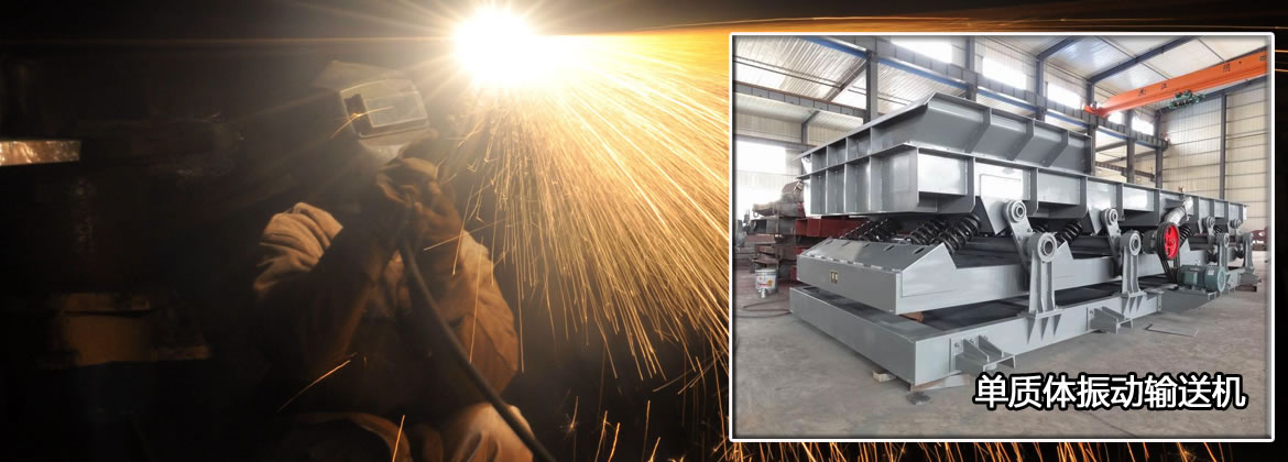SSL共振式振動輸送機是利用激振器使料槽振動,從而使槽內(nèi)物料沿一定方向滑行或拋移的連續(xù)輸送機械。激振器在電機驅(qū)動下產(chǎn)生周期性振動力,通過傳動機構(gòu)傳遞到輸送槽,輸送槽在激振源的帶動下按激振源相同的振動頻率產(chǎn)生周期性線性振動,同時振動力方向與輸送槽體輸送方向呈一定的拋料角,槽內(nèi)物料在強迫振動力的作用下沿槽體輸送面連續(xù)跳躍向前移動。除激振機構(gòu)某些零部件外,相對轉(zhuǎn)動部件很少。物料在振動輸送機中呈現(xiàn)拋射狀態(tài)輸送,對輸送槽的磨損較小。